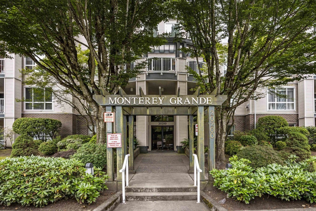 Welcome to Monterey Grande! This rarely available TOP FLOOR 2-bed, 2-bath condo offers 1,030 sq ft of spacious living in a QUIET location. You will be greeted with an open floor plan featuring UPDATED laminate flooring & crown moldings with a large dining area open to the living room featuring a cozy gas fireplace! The oversized primary bedroom boasts double closets w/ensuite + generous second bedroom, family bathroom & laundry room with SXS washer & dryer! Enjoy your morning coffee with mountain views on your large covered deck! BONUS storage locker conveniently located right beside your unit + 1 underground secure parking spot! The well-managed building features an amenity room, bike storage & workshop. Located - close to shopping, restaurants, an off-leash dog park & future Skytrain!