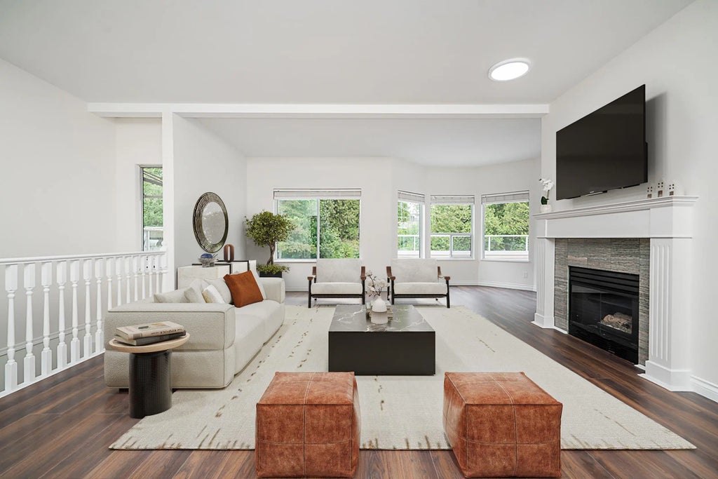 A townhome the size of a house! Over 2,200 sqft. of living space, 9'ft ceilings, and a two-car garage! Fully renovated, this 4-bed corner unit townhouse is perfect for big families or multigenerational living. West facing with tons of natural light and an incredible balcony! Brand new kitchen, bathrooms, floors, blinds, paint, and lighting! Primary bedroom overlooks green space with a walk-through closet + 4pc ensuite. TONS of storage space, gas fireplace & central vac. True laundry room with brand new washer & steam dryer. New front landscaping + low-maintenance turf! Located near schools, the West Coast Express Commuter Rail, shopping, & outdoor space. Among the largest homes at Stoneridge Estates, this is a perfect opportunity to settle into a welcoming, family-friendly community.