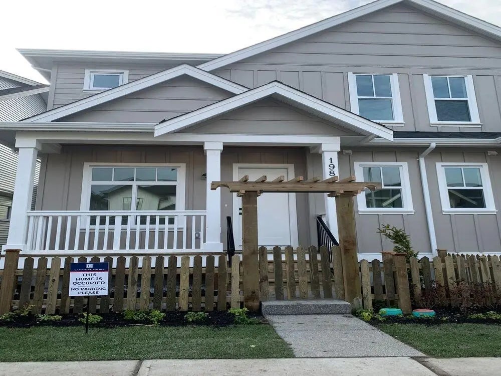 BRAESTONE DUPLEX by Lanstone Homes! This non-strata home offers an open-concept main floor with bright south-facing exposure for abundant natural light. Featuring 4 bedrooms + office + basement rec room and 3.5 baths, this home includes a gourmet kitchen with stainless steel appliances, two-tone shaker cabinets, and quartz countertops. Enjoy stunning hardwood floors, 10’ ceilings, gas BBQ hookup, high-efficiency furnace, and air conditioning. Spacious primary bedroom with vaulted ceiling and spa-inspired ensuite. Close to schools, parks, shops, restaurants, and quick Hwy 1 access. Still under 2-5-10 home warranty. Call today to book your showing!